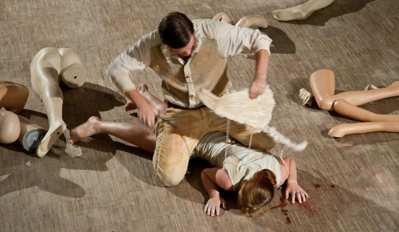 Das FAUSTSPIEL bedient sich einerseits des schonungslosen psychologischen Schauspiels, andererseits der Performance. Die Darsteller*innen wechseln permanent zwischen der literarisch konstruierten Figur und ihrer eigenen Persönlichkeit. Ausgehend von der Geschichte der Faust-Theaterinszenierungen und Faust-Rezeption in der bildenden Kunst, die erschlagend umfassend ist, beruht die Inszenierung auf der Spannung zwischen der Verwertung des bekannten Materials, seiner Neueinordnung und der inhaltlichen Auseinandersetzung. Die Überspitzung dieses Vorgangs mündet in einem FAUSTSHOP, der ähnlich einem Souvenirladen die Hochkultur in einen kitschigen Popzirkus verwandelt.