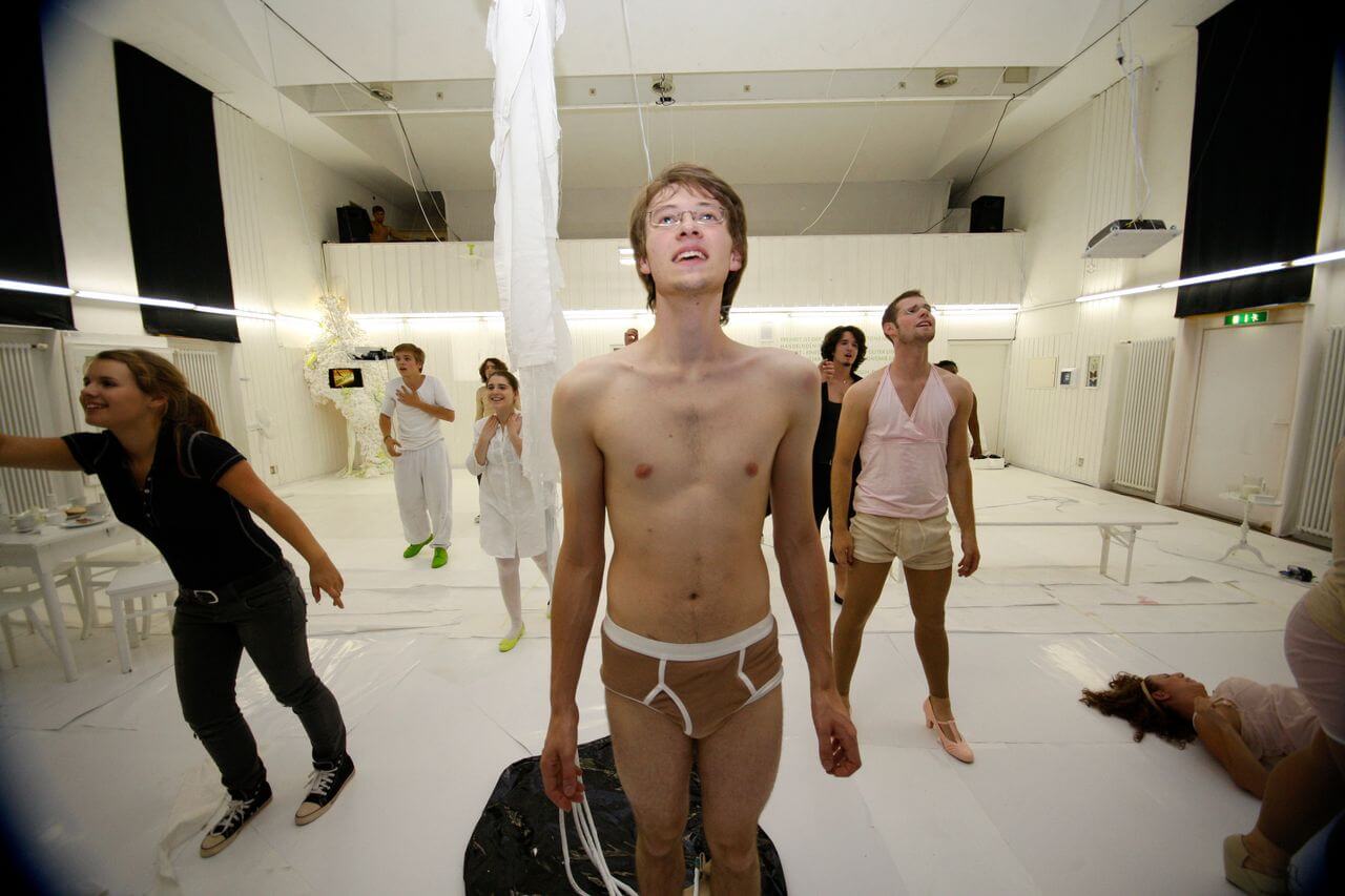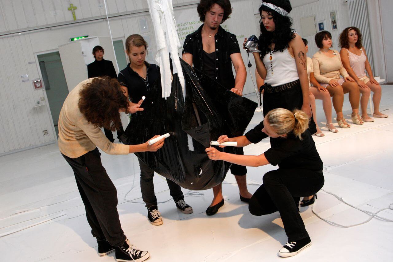 Nach 97 Jahren seit der Entstehung des kafkaschen Textes und im Jahr des 126. Geburtstags von Franz Kafka wagten die 21 jungen Darsteller*innen und Künstler*innen einen weiteren Schritt des theatralischen Experimentierens. Die Theaterbesucher*innen erwartete kein homogener Theaterabend, sondern ein aus Textfragmenten, Rauminstallationen, Tanzperformance und Kunstausstellung bestehendes Erlebnis.