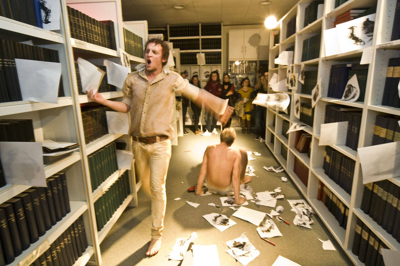 25 Darsteller erzeugen einen provokativen Bilderrausch zu Motiven von Goethes Faust, der sich zu einer irritierenden Performance fügt. Der literarische Text wird dabei nicht nur untersucht, sondern seine Tauglichkeit in der Gegenwart hinterfragt, neu geordnet und durch zeitgenössische Texte ersetzt. Als besonderes Angebot der Hals-Nasen-Ohrenklinik Heidelberg begleitet die Gebärdesprachdolmetscherin Silke Gold die Performance und eröffnet damit eine weitere kreative Ebene des Erlebens.